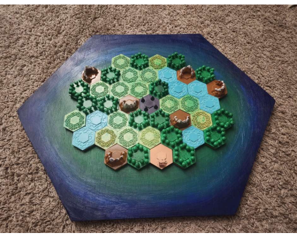 My modular board game, Invasion, was originally inspired by an experience in class with virtual games that introduced me to the concept of socially aware game design. One of the games that sparked my interests was Factorio, a game centered on resource extraction and automation. While its gameplay mechanics are impressive and engaging, I found myself disagreeing with the underlying narrative: the player's advancement depends on the destruction of the planet's native ecosystem, which is portrayed as an endless horde of alien bugs. This depiction not only dehumanizes indigenous resistance but also reinforces a colonial exclusive mindset that doesn't give the Natives any true chance to win. So, I took it upon myself to introduce a similar concept, only this time with two opposing sides; each with advantages and disadvantages attributed to their culture.